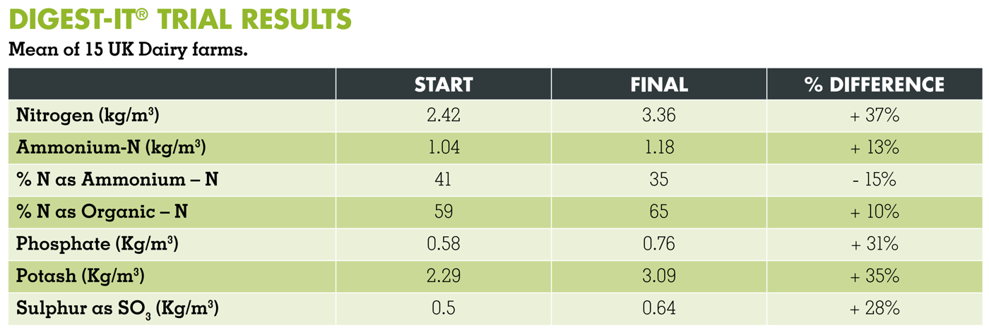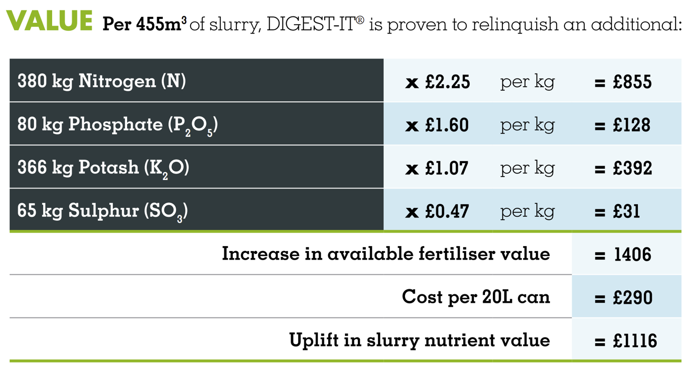 - DIGEST-IT® treated slurry grows more, better quality grass.