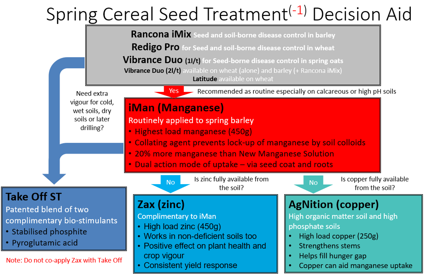 Rancona iMix The preferred base treatment for spring barley based on a combination of ipconazole and imazalil. It control loose smut, leaf stripe and seedling blight dieases. Agrii trials also show that it control seed-borne net blotch. It is also used with Vibrance Duo on barley to boost activity against loose smut and leaf stripe.