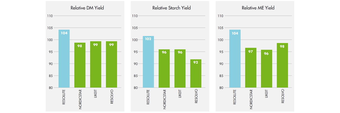 - 102% Relative starch yield